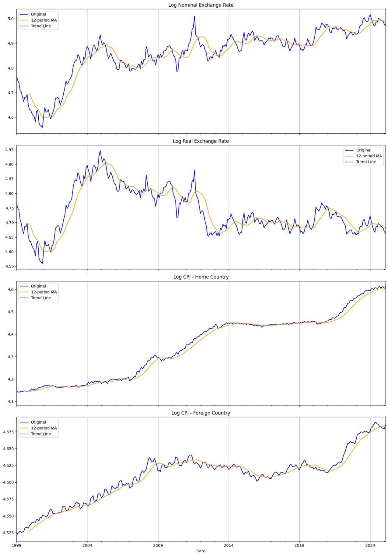 - Conducted ADF stationarity tests and OLS-based PPP hypothesis testing