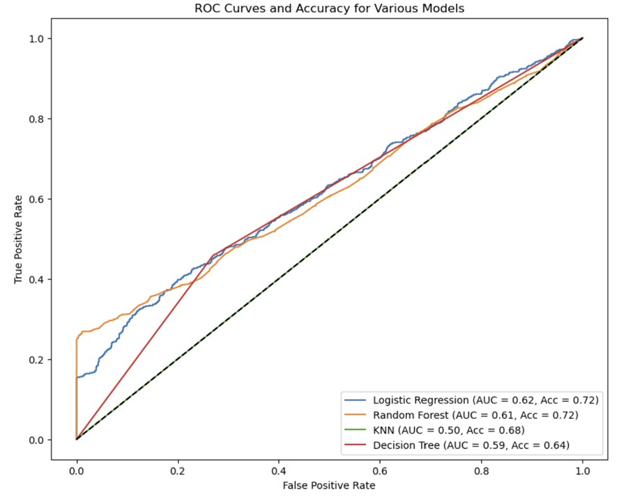 - Performed hyperparameter tuning; achieved 75.63% accuracy and 0.93 AUC with Random Forest